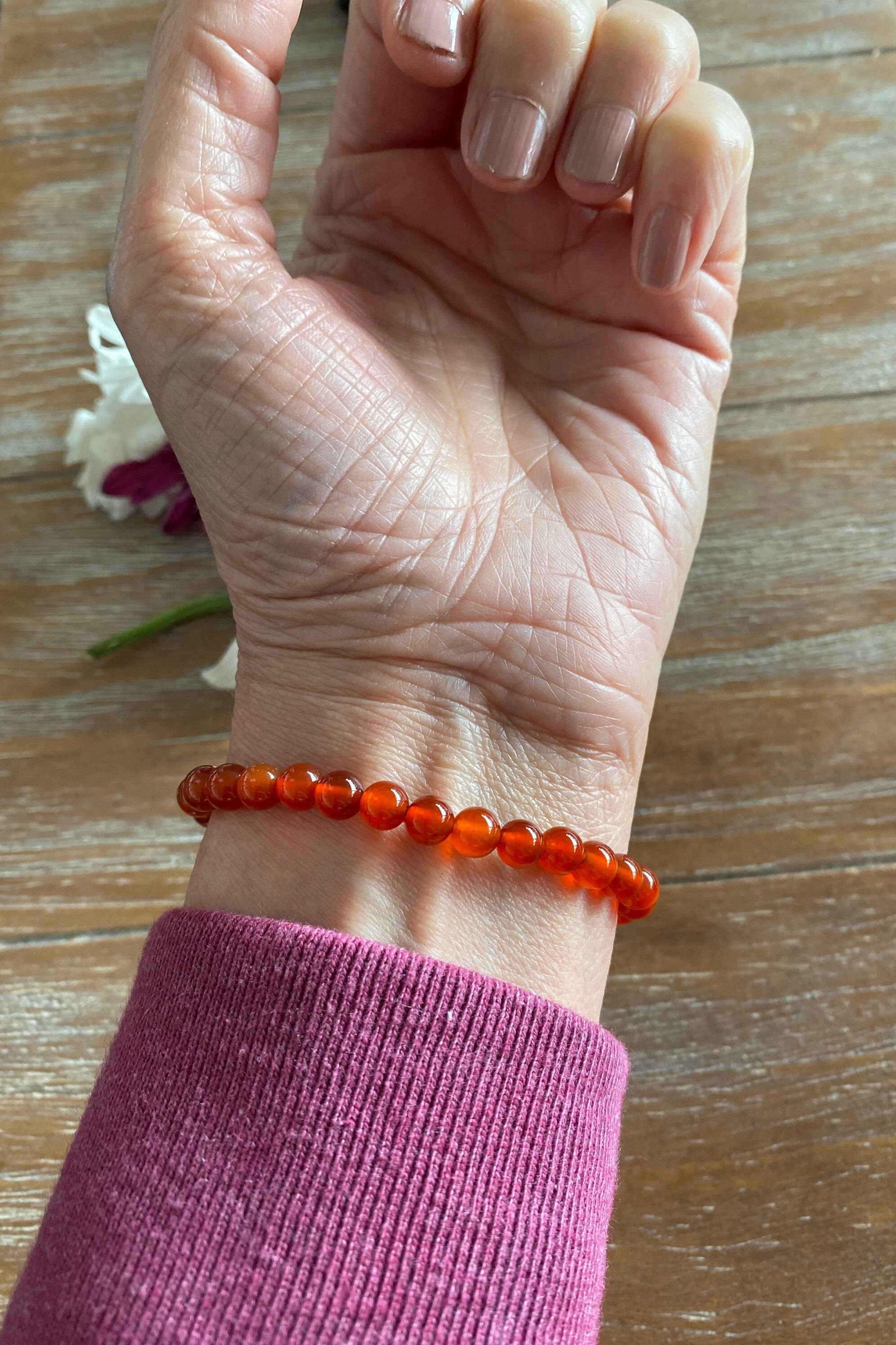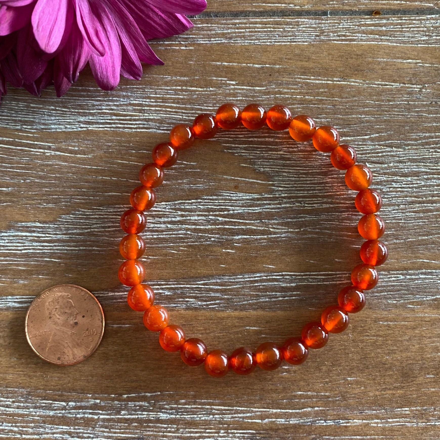 Carnelian Gemstone 6mm Beaded Bracelet