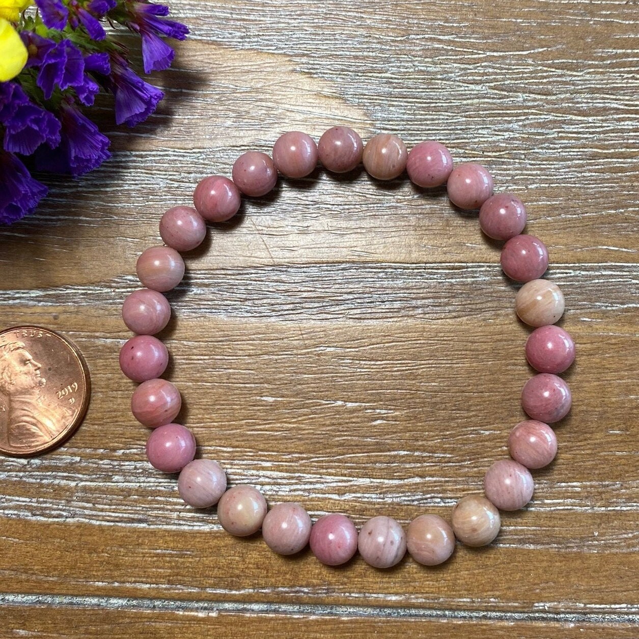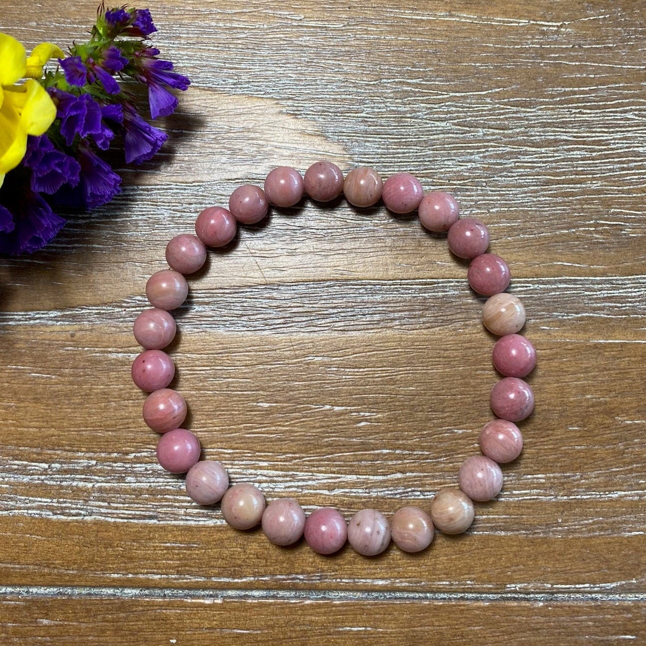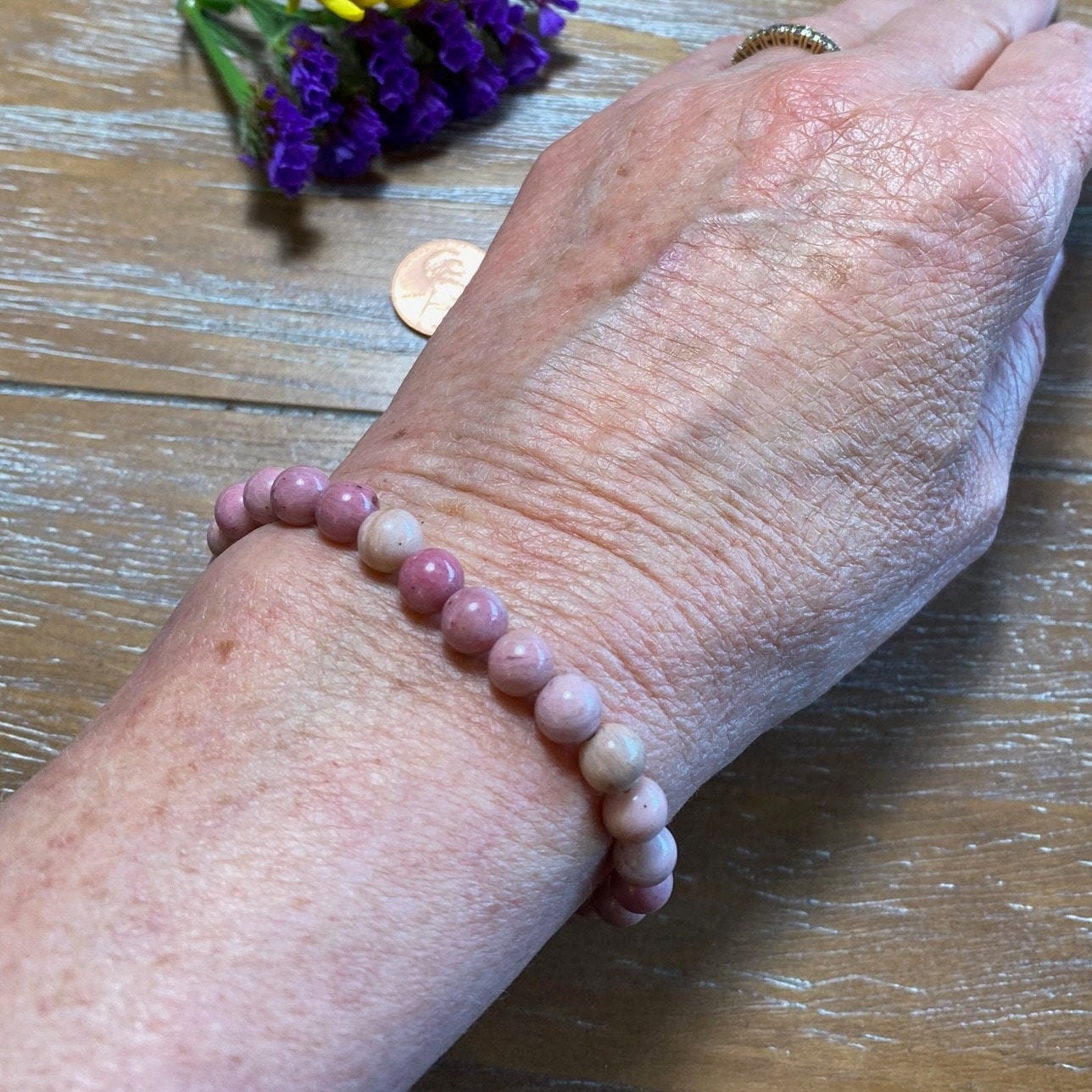 Rhodonite Gemstone 6mm Beaded Bracelet