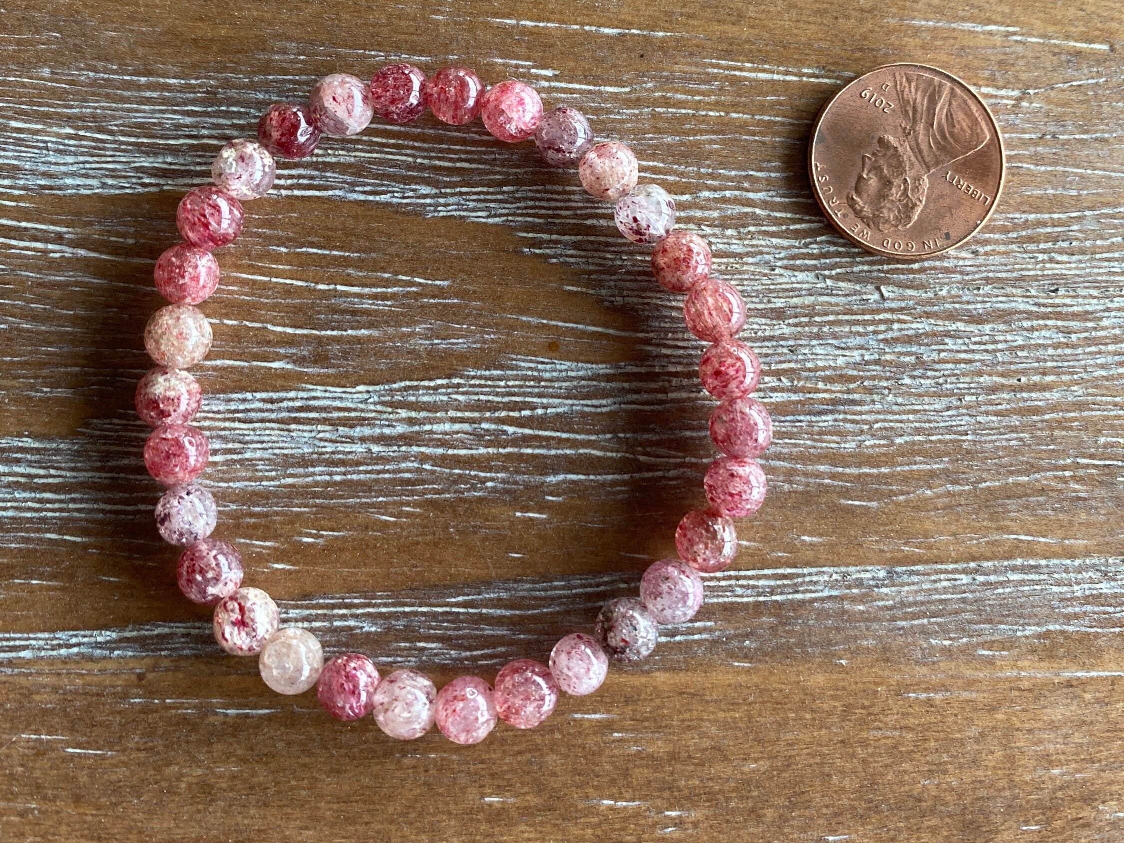Strawberry Quartz Gemstone 6mm Beaded Bracelet