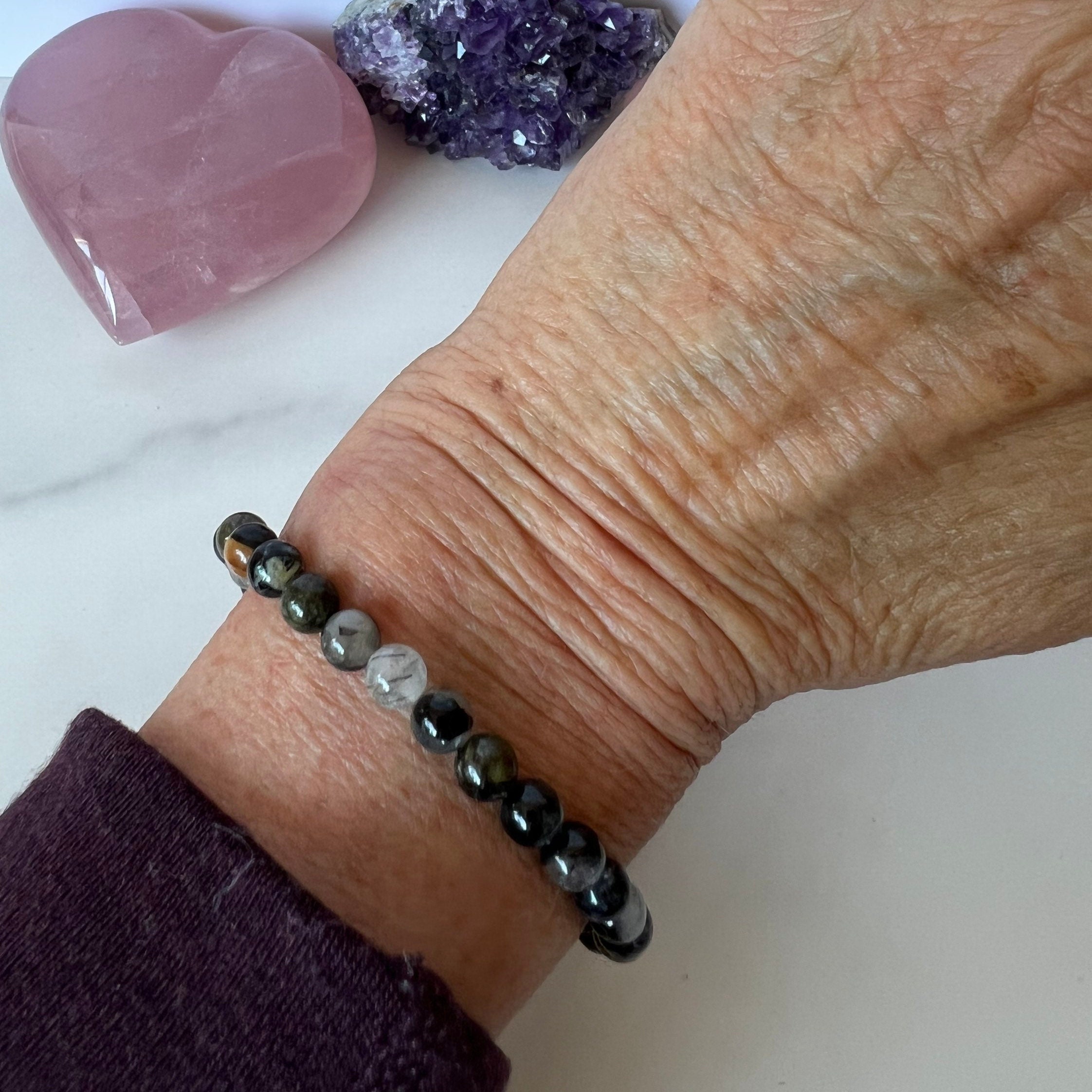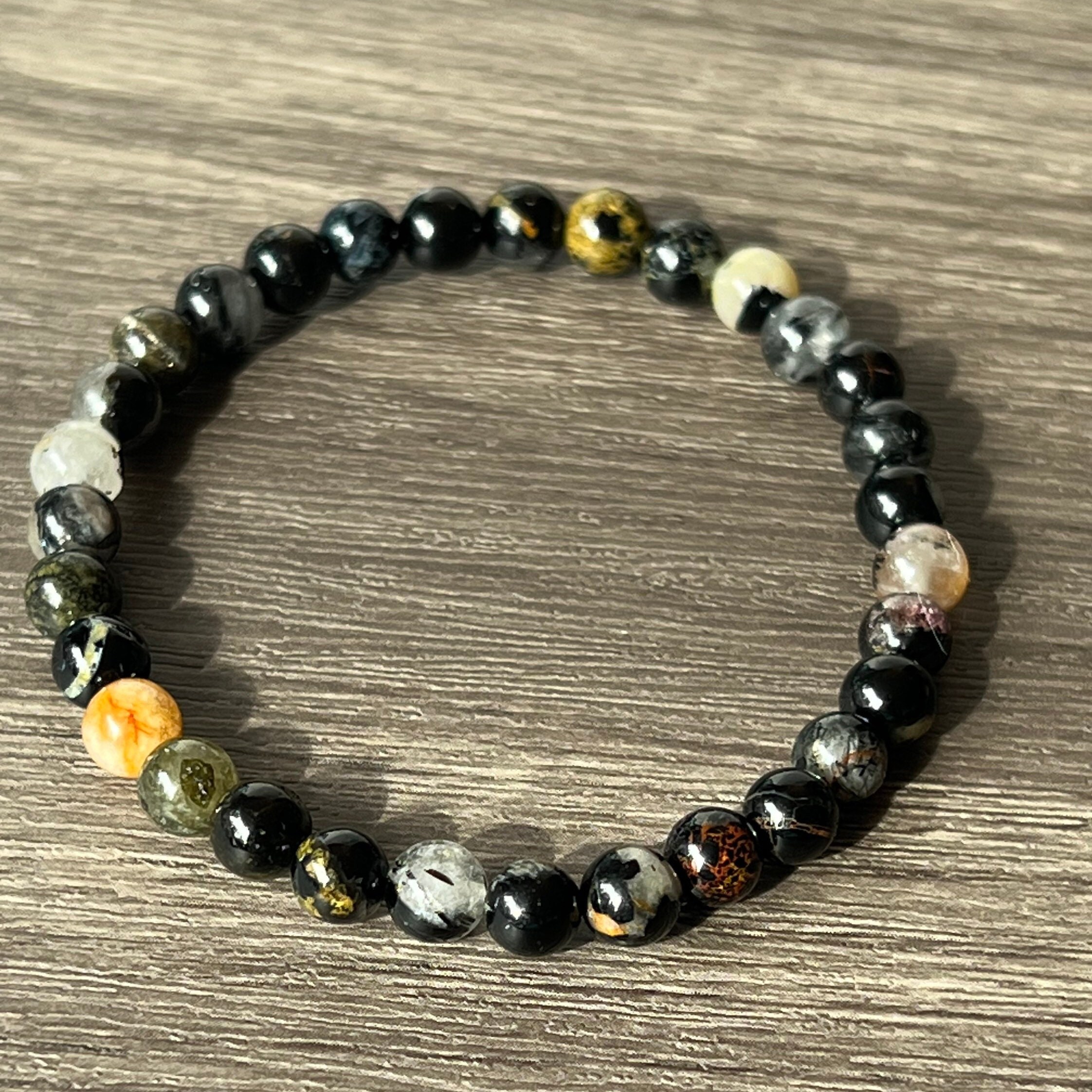 Limited Edition Black Flower Tourmaline 6mm Beaded Bracelet