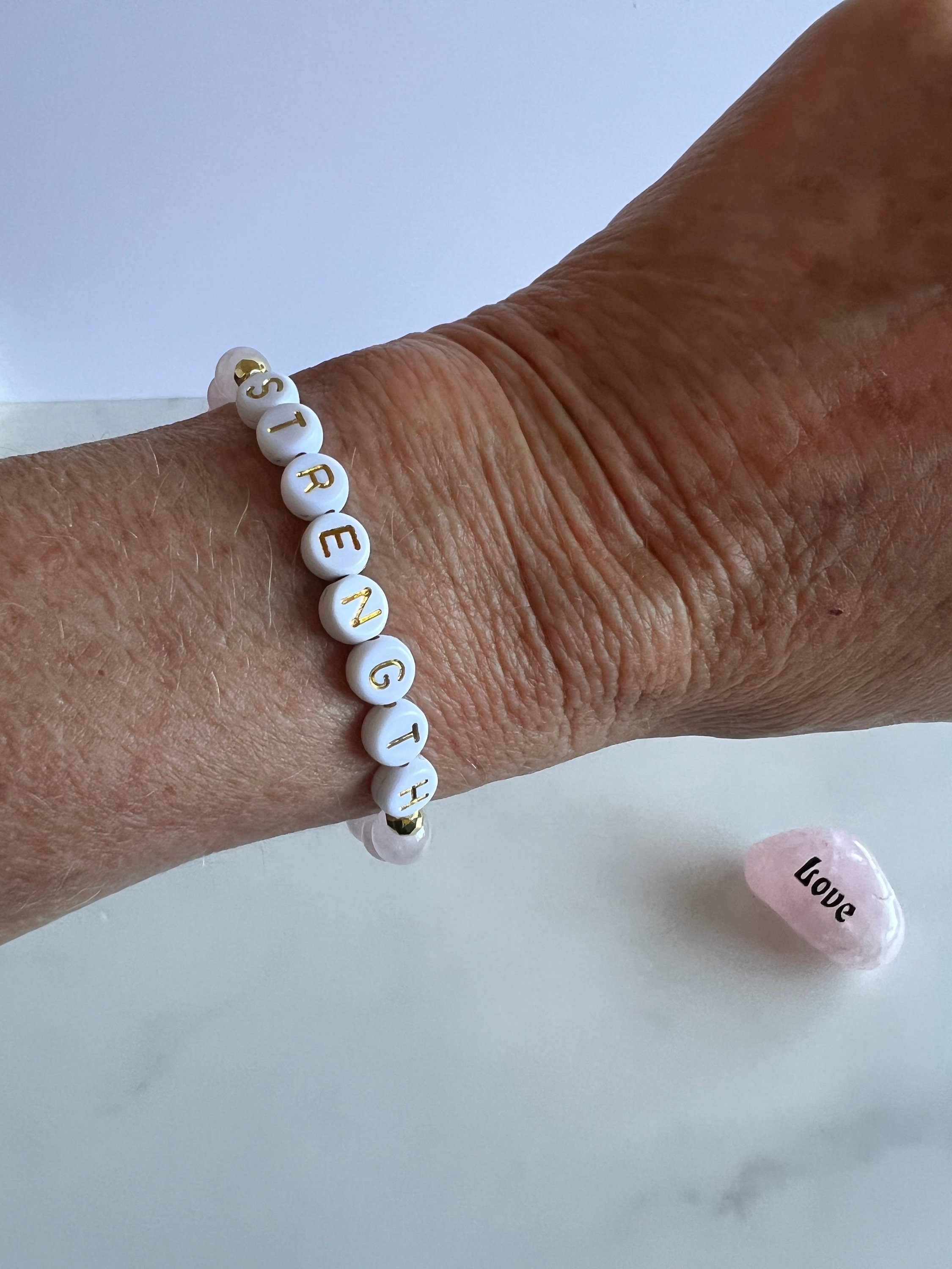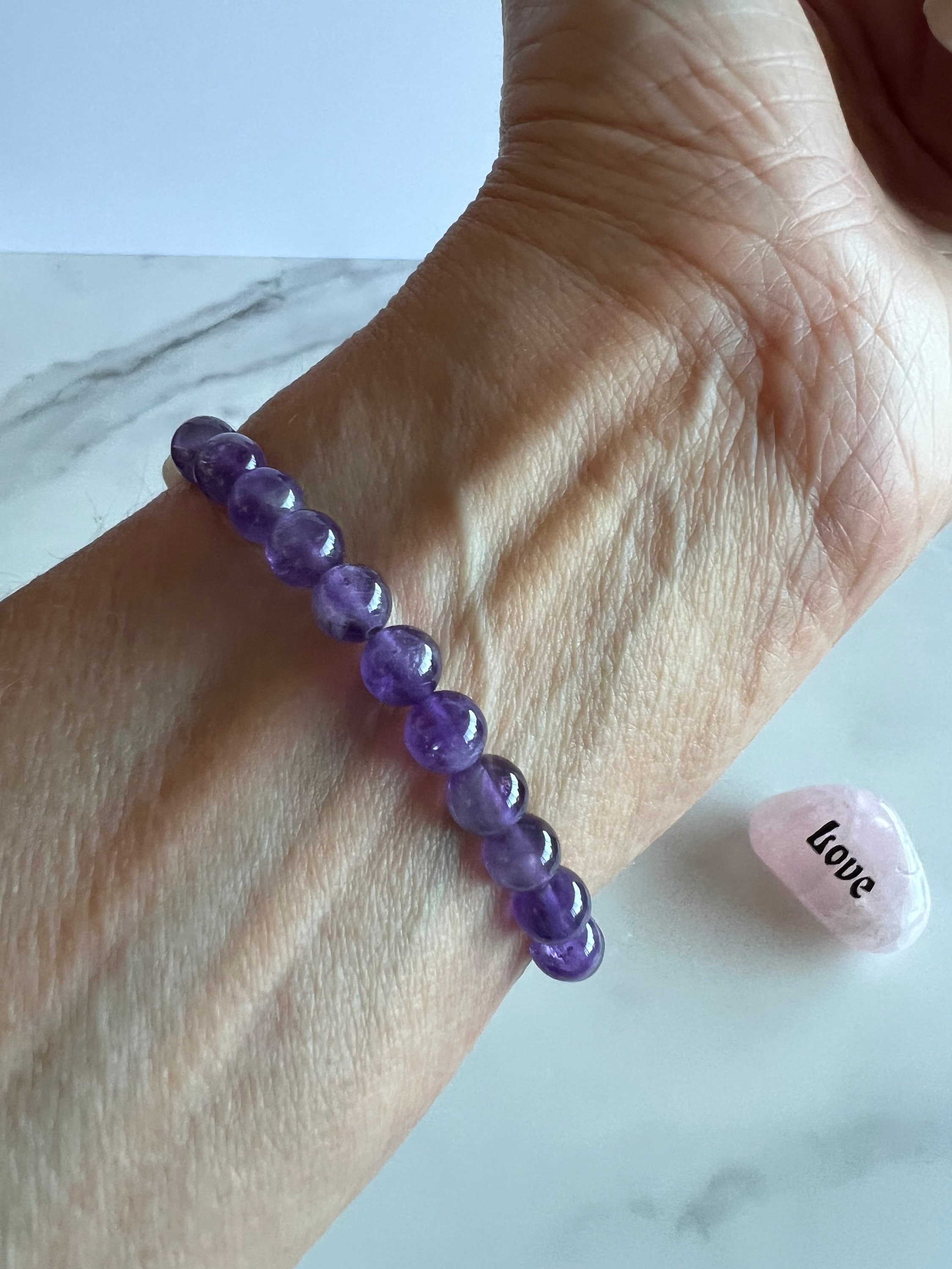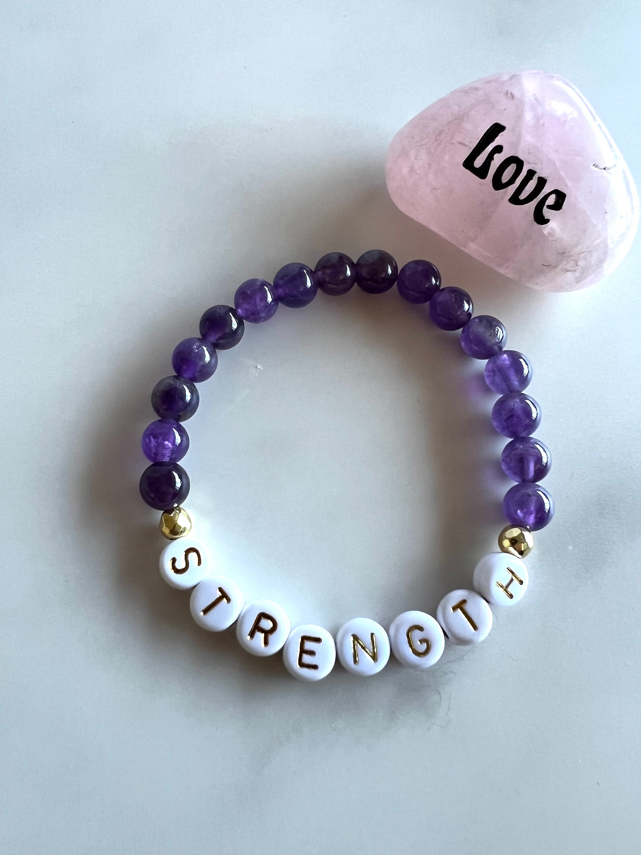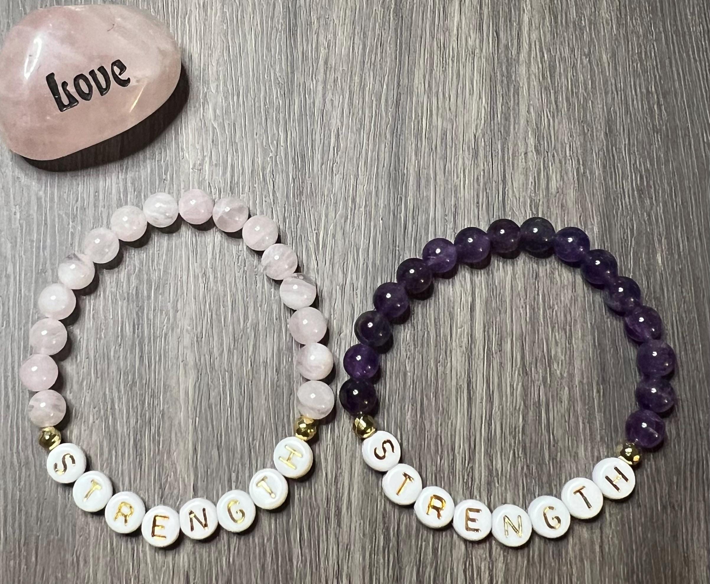 Rose Quartz or Amethyst "Strength" Gemstone Bracelet (Bead size 6mm)