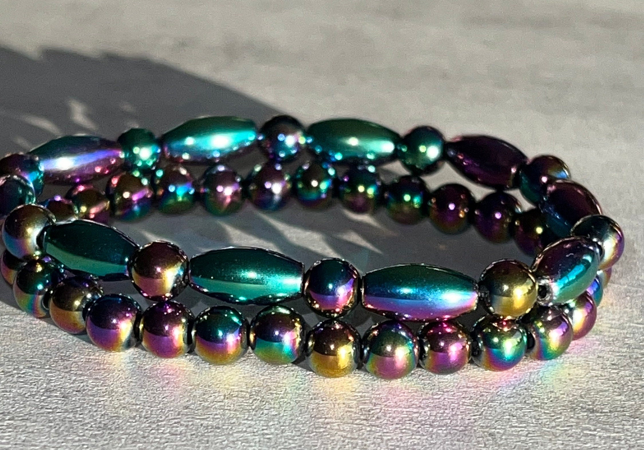 Magnetic Rainbow Hematite Beaded Bracelet