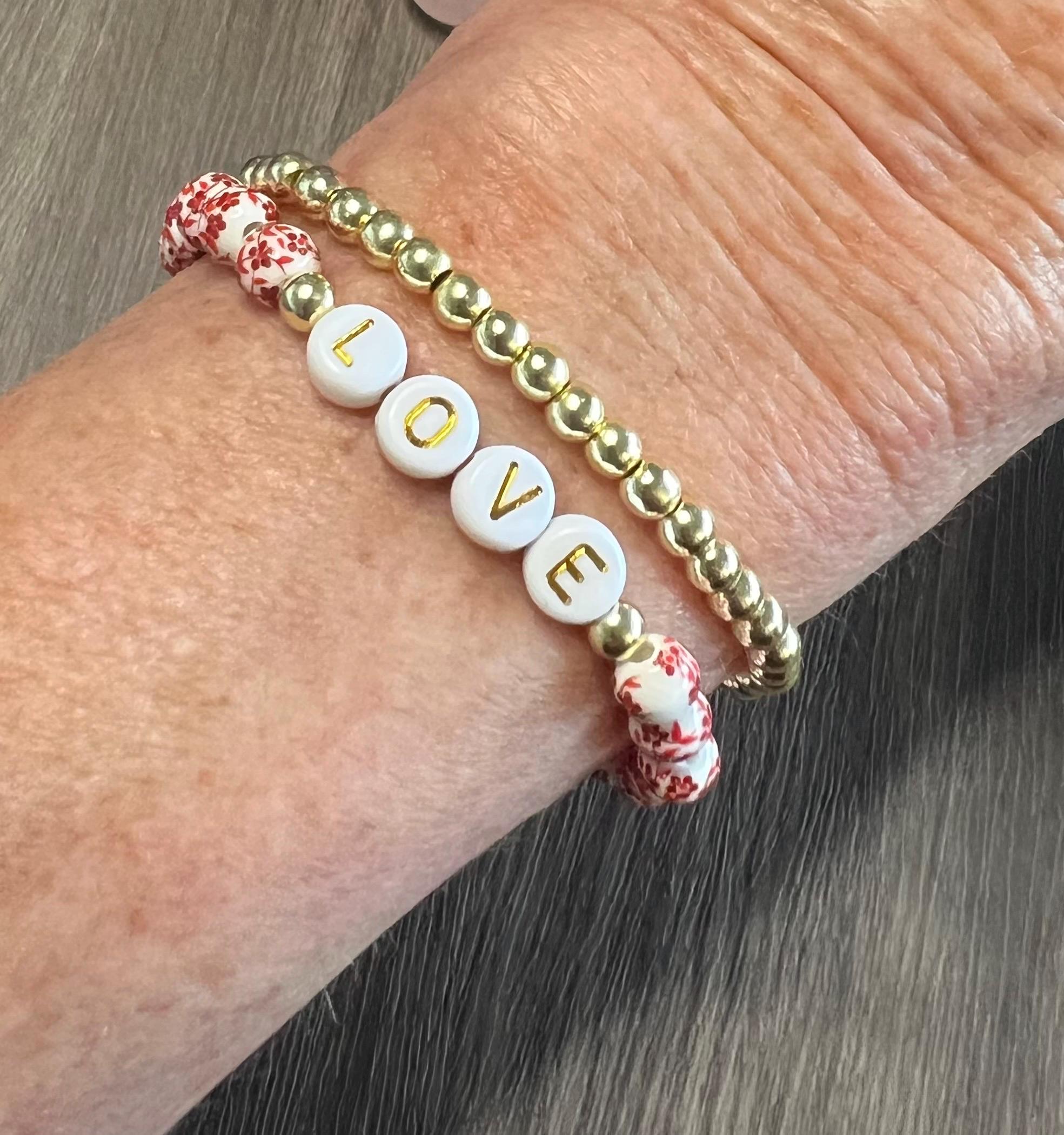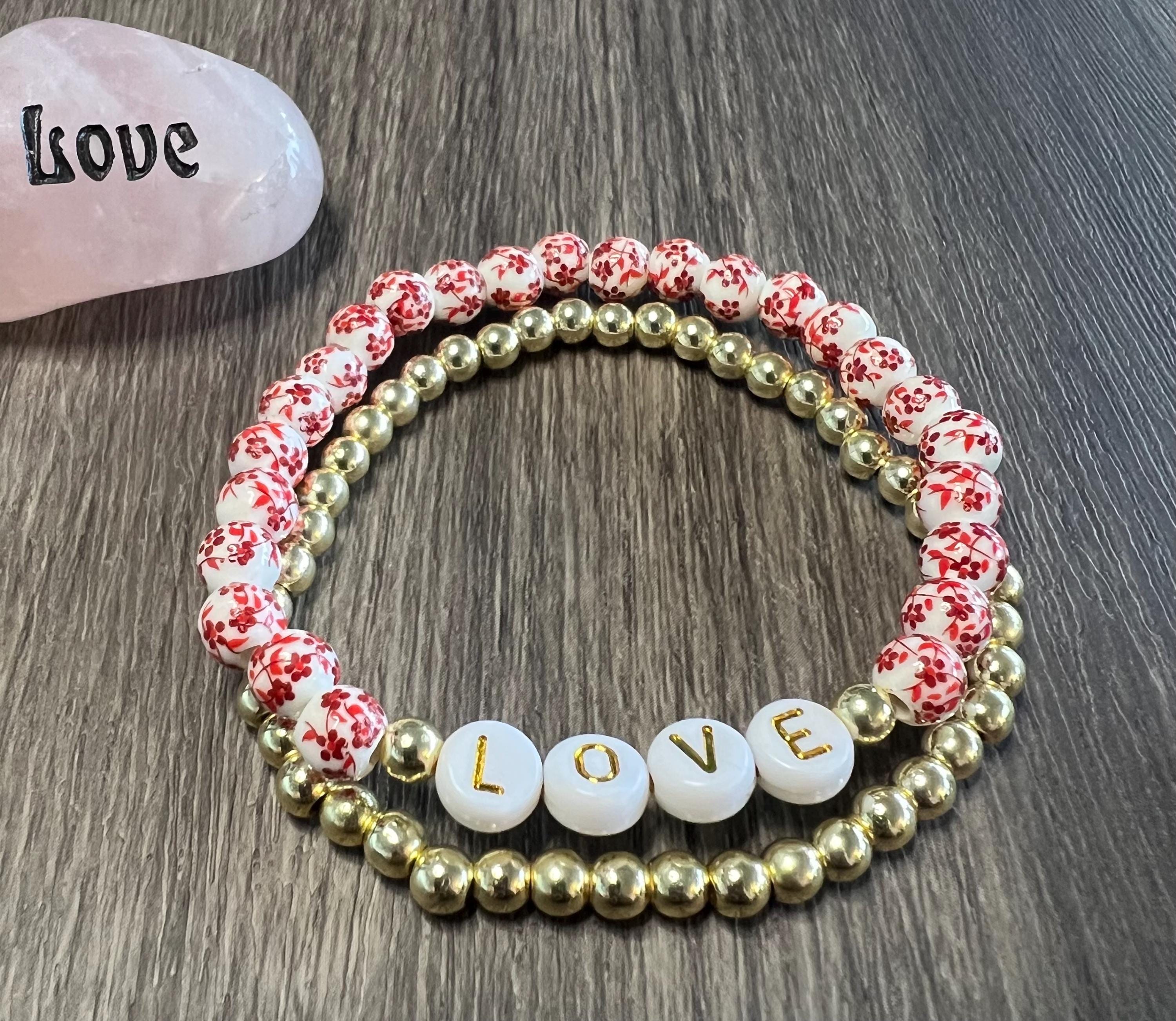 Red Floral Ceramic Bead Valentine's Day “LOVE” Bracelet